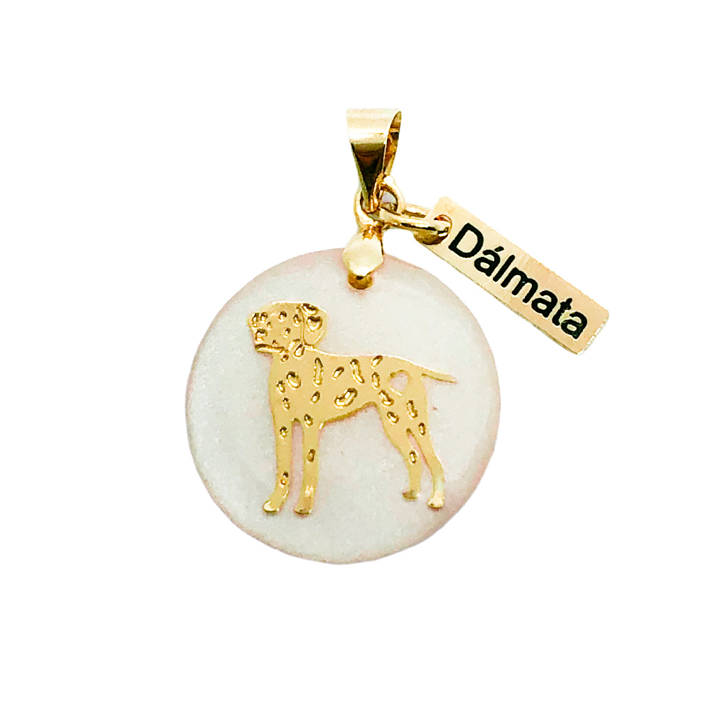 Lindo Colar Dálmata coleção Pet raças com pingente perolado e plaquinha com a raça em uma delicada corrente tipo veneziana também folheada a Ouro 18k. Semijoia perfeita para demonstrar todo seu amor pelo seu amigo de quatro patas!