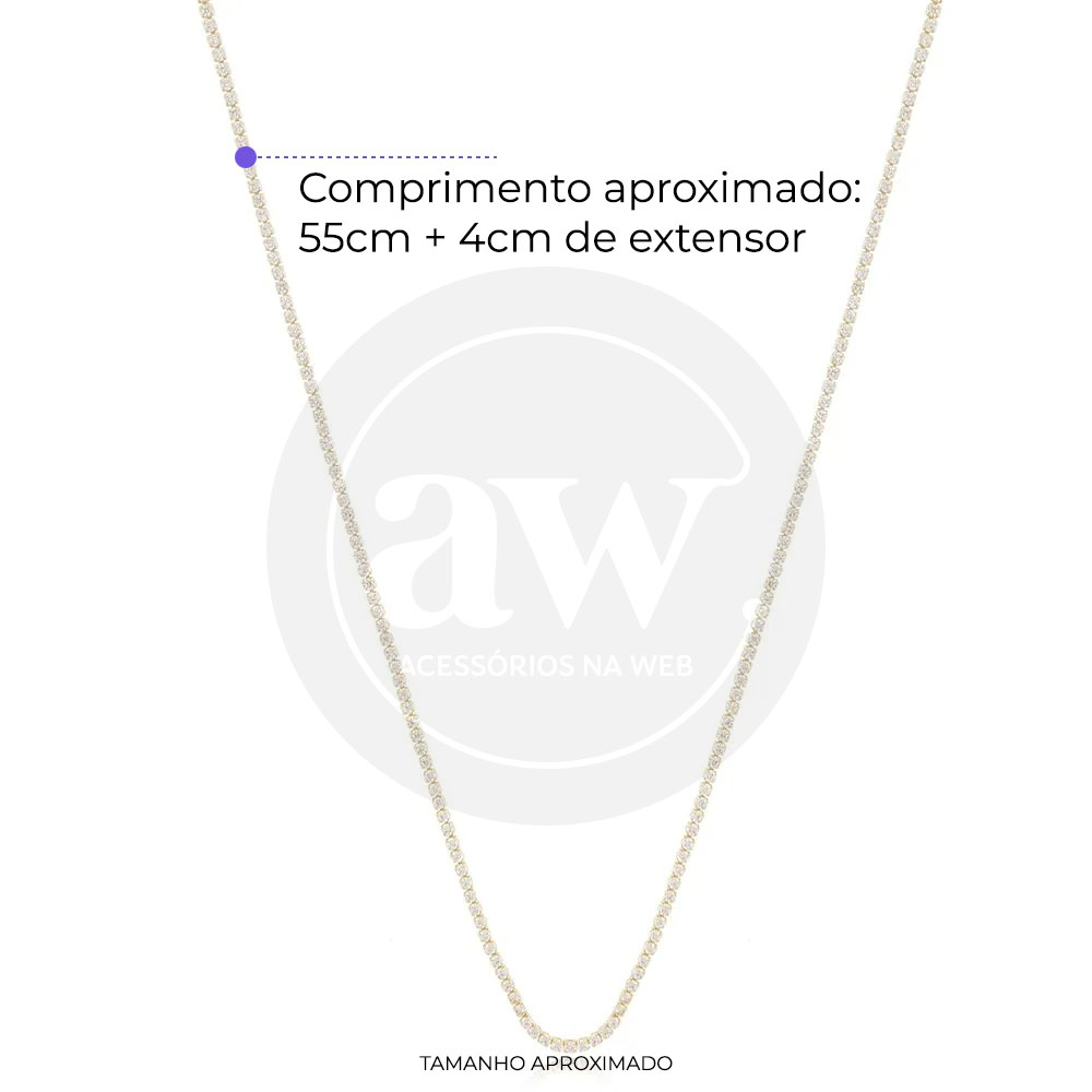 Colar riviera cristal banhado em Ouro 18k, zircônias de aproximadamente 1,5mm de espessura. Uma semijoia delicada e cheia de glamour para deixar seu look ainda mais elegante.